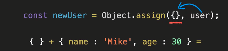 const newUser = object.assign({ {}, user) => 참조값이 복사되는것이 아니라 복제되는 메소드